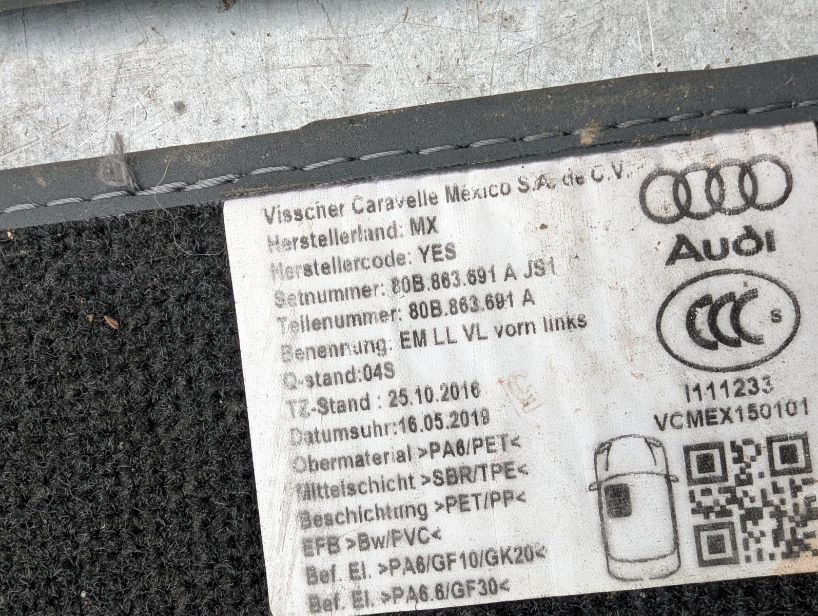 80B863691AJS1 Комплект килимків салону (під чистку) Audi Q5 80A 2019